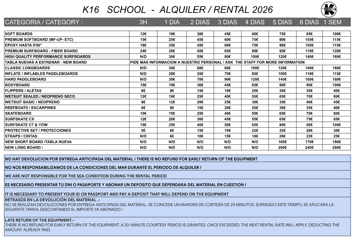 © K16 SURF SCHOOL TENERIFE · TODOS LOS DERECHOS RESERVADOS 2022